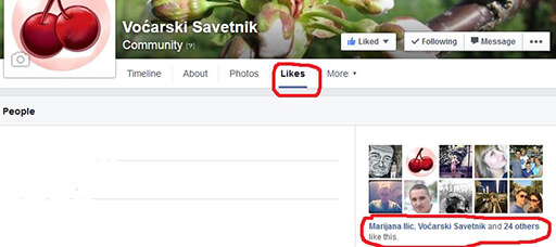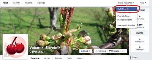 Na gornje 2 slike možete videti gde se vidi koliko je vaših prijatelja lajkovalo kao i gde je dugme da ih pozovete. Možete ih pozvati i šerovanjem ove stranice, ali je bitno da oni odu na link Voćarski Savetnik i kliknu „like“ ili to urade na naslovnoj stranici sajta Voćarski Savetnik.