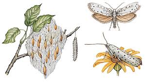 Kada porastu, duge su 2 cm. Ulutkaju se u belim kokonima, koji su grupisani jedan do drugog. Lutke su mrke boje. Leptiri polažu 20 do 80 jaja u jajna legla veličine 2 do 3 mm. Jaja su u leglu poređana kao crepovi na krovu. Prekrivena su sekretom, pa imaju boju kore jabuke. Ispiljene gusenice tokom jeseni i zime prave rupice u kori ispod legla.