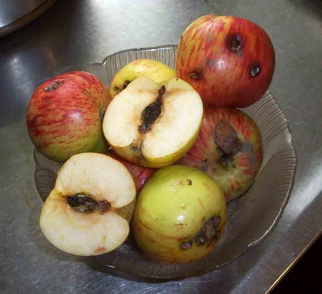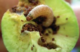 Ženka polaže jaja na plodove ili blizu njih na grane i listove. Gusenica se ubušuje u plodove i ide ka semenoj kućici, buši hodnik u plodu. Na mestu ubušivanja u plod, gusenica izbacuje crvenkasti izmet. Nakon razvoja gusenice se spuštaju na zemlju i ulutkavaju se.